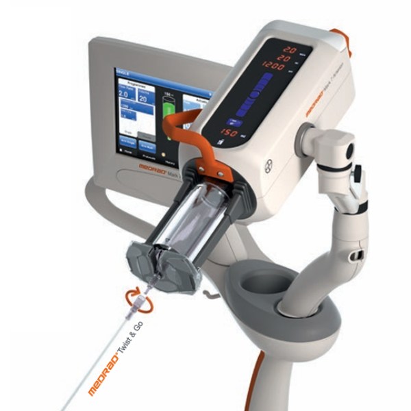 - Ống tiêm và dây nối áp lực cao trong suốt giúp quan sát rõ chất cản quang & bọt khí.