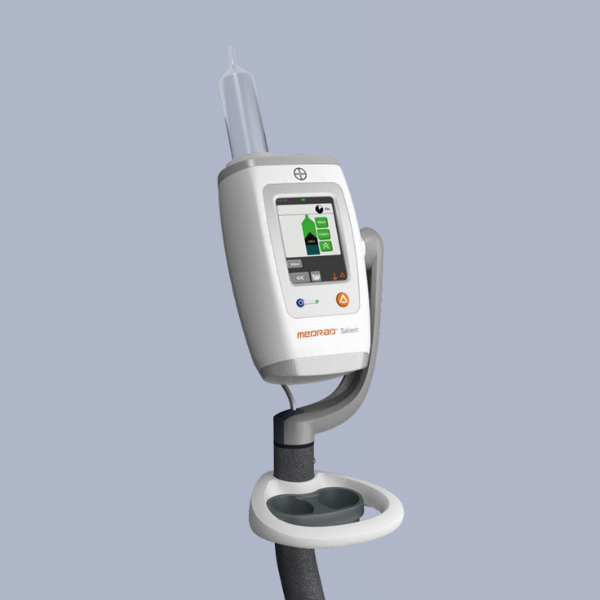 Hệ thống bơm tiêm điện MEDRAD® Salient của Bayer là dòng bơm đơn nòng dành cho chụp CT, nổi bật với tính cơ động, thiết kế đơn giản và độ tin cậy cao. Thiết bị hỗ trợ tối đa cho quy trình tiêm thuốc cản quang với tốc độ lên đến 10 mL/s, áp suất tối đa 300 psi, và có thể lưu tới 20 giao thức tiêm tùy chỉnh.