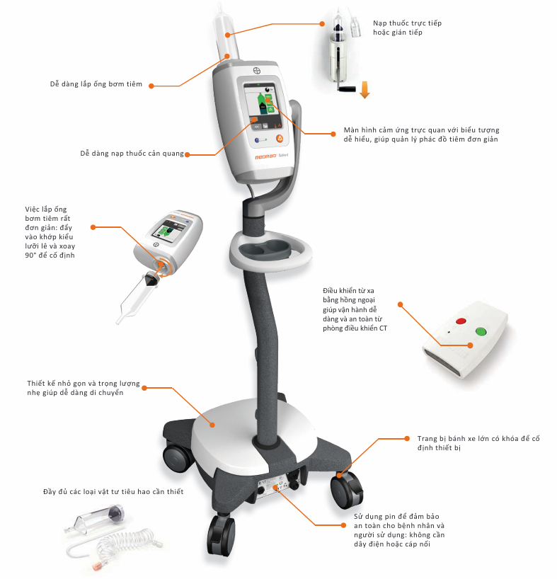 - Công cụ hỗ trợ giao thức PAT, tự động tối ưu liều và tốc độ tiêm.