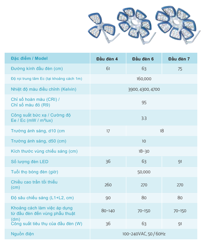 - Quản lý nhiệt vượt trội: Chỉ 3,3 mW/m²lux, giúp giảm nguy cơ làm khô mô, bảo vệ vết thương.