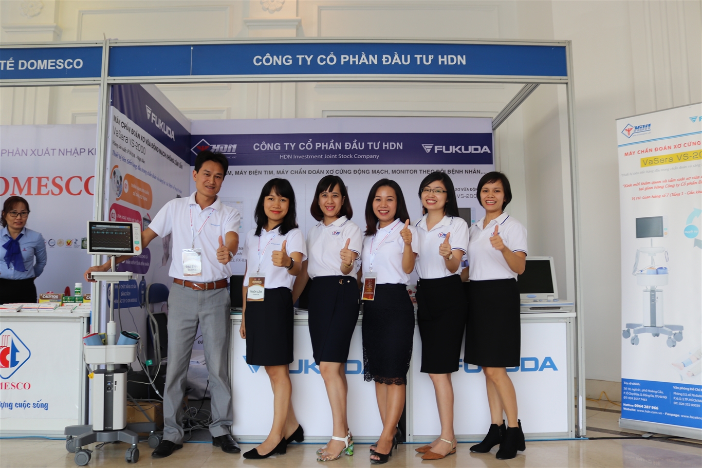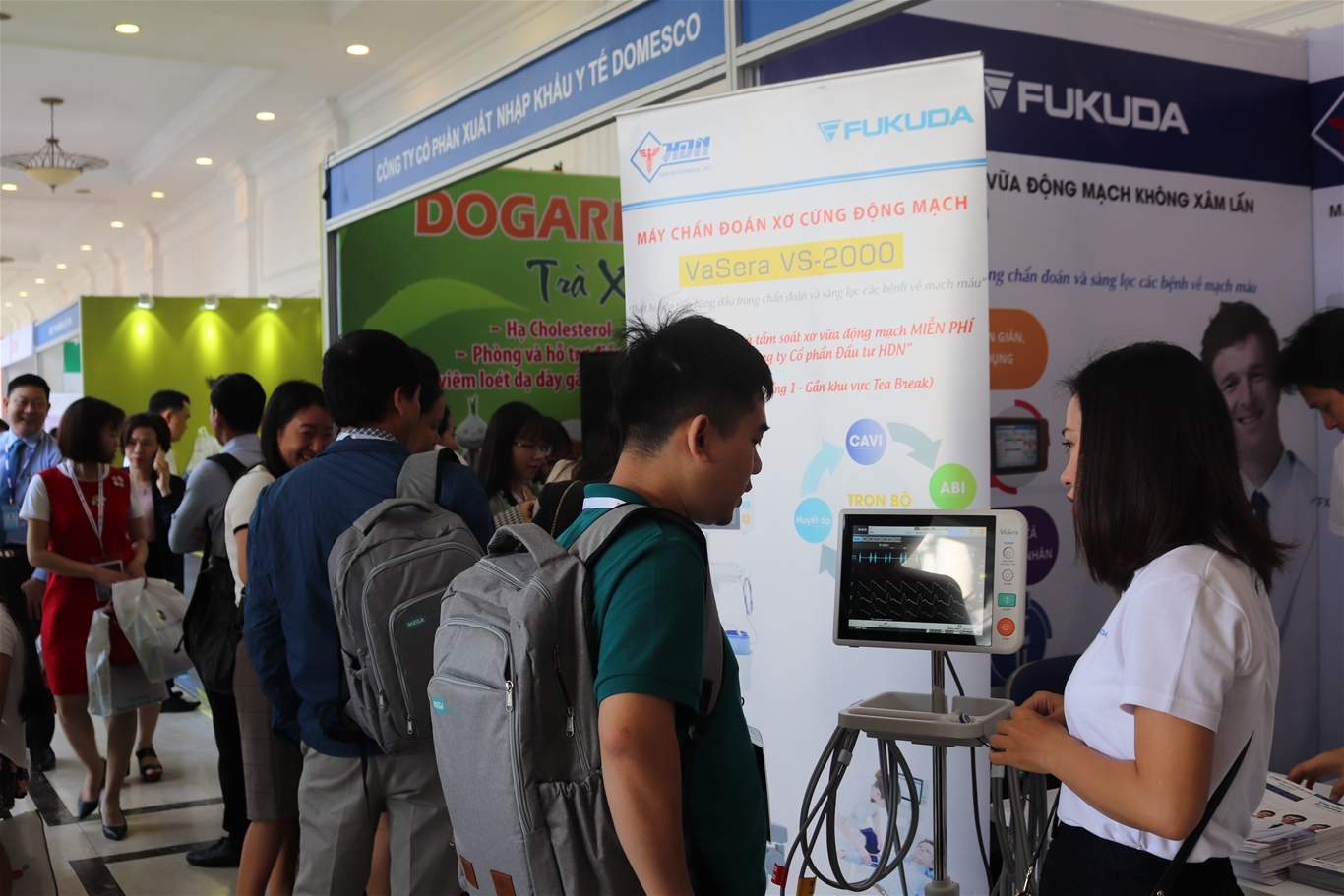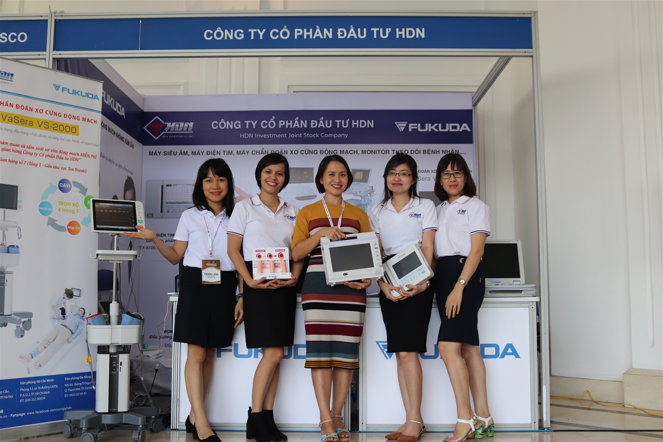 Tham gia hội nghị lần này, gian hàng của Công ty CP đầu tư HDN đã trưng bày và giới thiệu các sản phẩm hỗ trợ thăm khám để tầm soát bệnh tim mạch như máy chẩn đoán xơ cứng động mạch không xâm lấn - Vasera VS2000, máy siêu âm, máy điện tim Fukuda,...