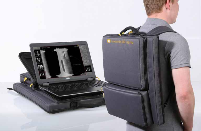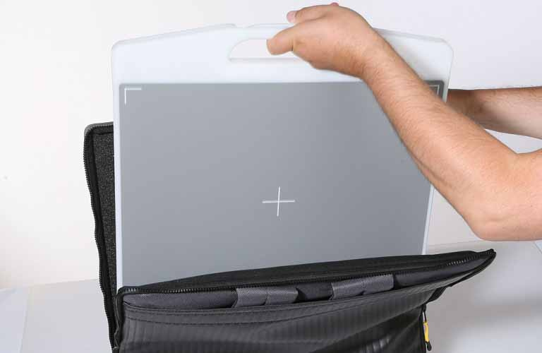 - Tất cả thiết bị (tấm detector không dây, laptop hoặc máy tính bảng, phụ kiện) được bố trí trong ba lô chuyên dụng, khung bảo vệ chắc chắn.